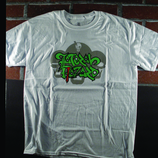NEW Original Hazard Graffiti design on 100% soft white cotton tee. hazard shield design on back.