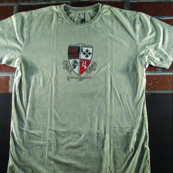 Original CC Crest with a hazard flair. custom screen print center chest hit on light blue mineral wash stress fitted tee. 100% ring spun 30 cotton for comfort.