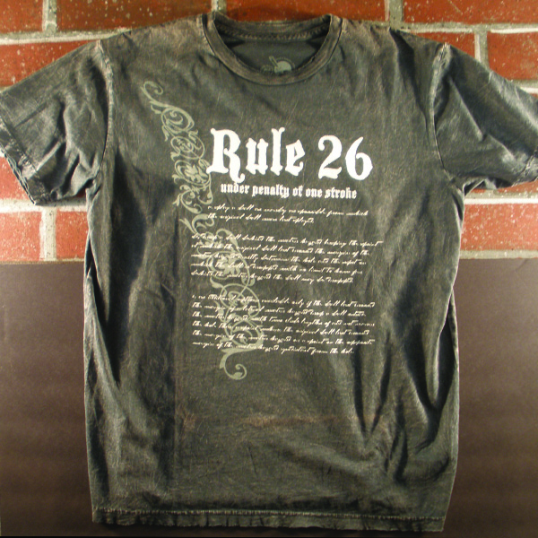 WHAT DO YOU DO WHEN YOU'RE IN A WATER HAZARD? The rules of golf RULE 26 is THERE right ON YOUR SHIRT...text graphic custom screen print front. 100% 30 ring spun cotton.